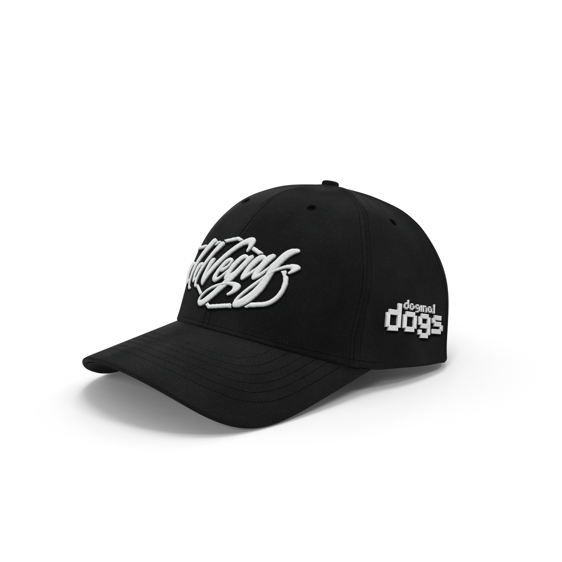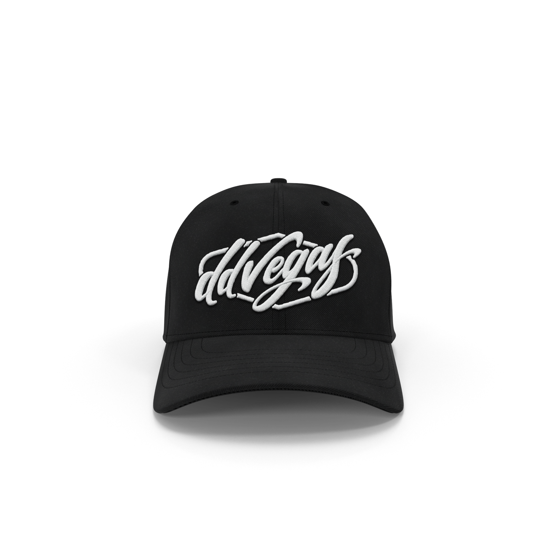 Structured black cap with raised DDVEGAS front embroidery and Doginal Dogs side logo. Part of the DDVEGAS commemorative collection.